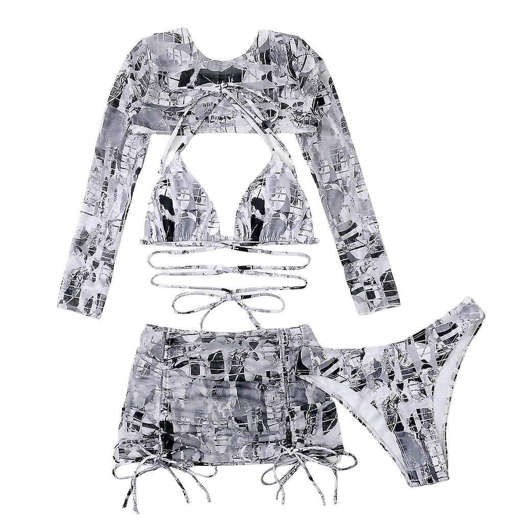 Women's Floral Print Bathing Suit Ladies 4 Pieces Swimsuit w/ Cover Up Beachwear