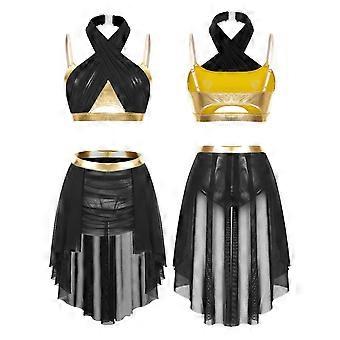 نسائي من قطعتين فستان الرقص الحديث ملابس الباليه زي أداء زي كتلة الألوان الرسن المحاصيل الأعلى انقسام تنحنح غير متماثل تنورة