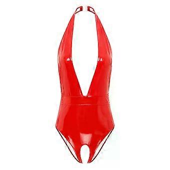 نسائي نظرة رطبة جلد براءات الاختراع بدون المنشعب بدلة الرسن عميق V عارية الذراعين ملهى ليلي عمود الرقص ملابس النوم