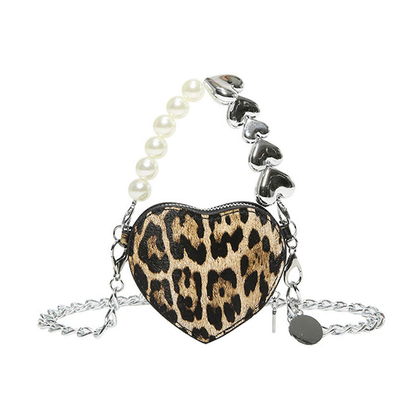 Women's Leopard Pattern PU Shoulder Bag Heart Design Crossbody Bags Evening Handbag with Chain for Stylish Look Yellow