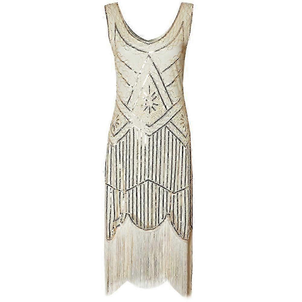 Womens 1920s Flapper Dress Long Fringed Great Gatsby Costume Dress 20s Sequins Beaded Vintage Style Dresses -NMAOV