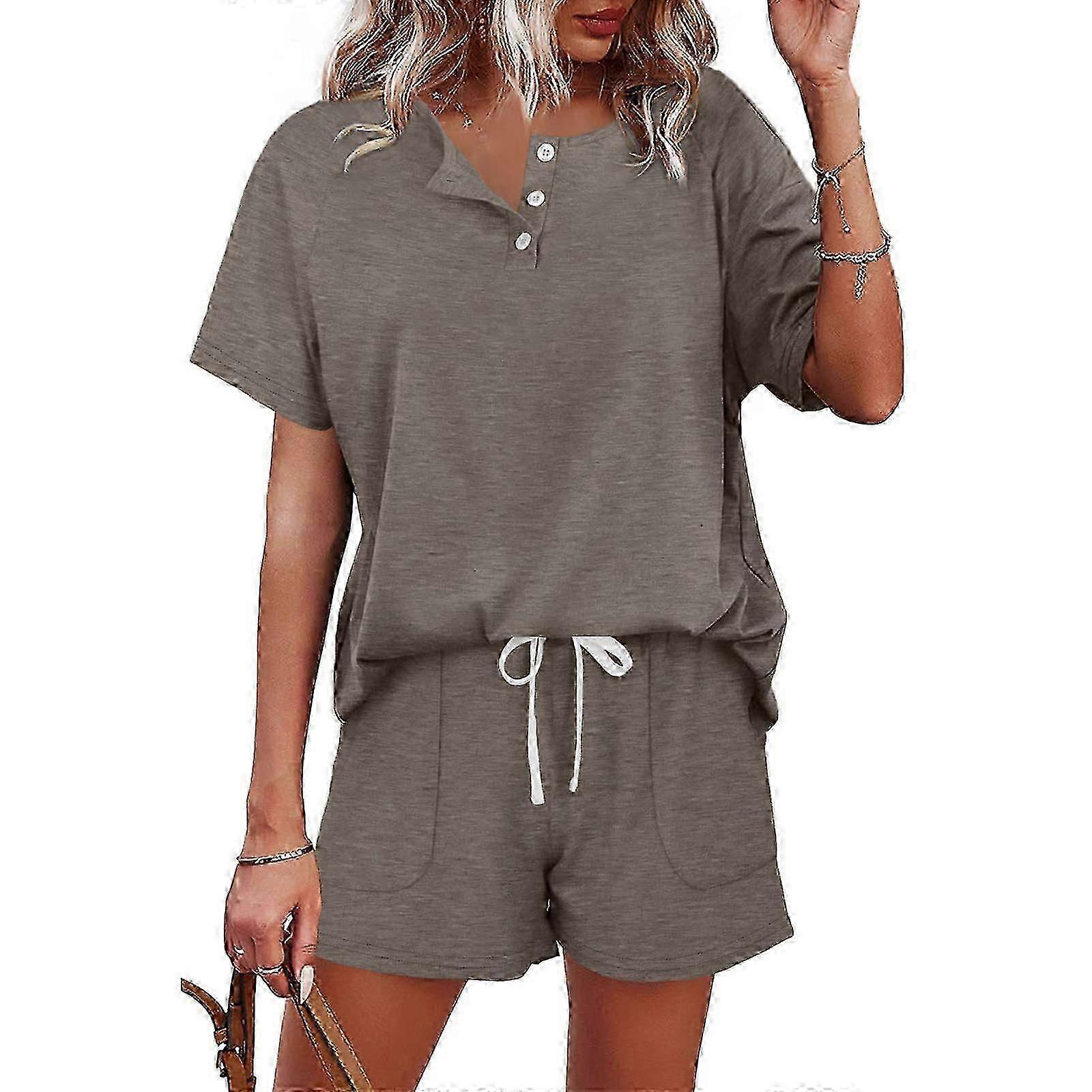 Features: and high quality Quality cotton material, lightweight, skin-friendly, breathable, soft and comfortable. Solid color, 2 piece short set. You can wear this loungewear a tracksuit or them apart separates. Button down top: v-neck t-shirts, short sleeve, loose fit, solid color, pull-on closure. Drawstring shorts with pockets: Stretchy waistband with an adjustable drawstring. Great for daily, casual, workout, casual, leisure wear, running, sports, lounging around house, etc. Specifications: Material: Cotton Color: Black, Blue, Green, Gray, Tangerine, Pink, Khaki, Violet, Light Green, Dark Red Size: SizeS or SizeM or SizeL or XL or 2XL(Chinese Size,follow the size chart to select please) Size:S Bust:89.99cm(35.43inch) Waist:64.01cm(25.20inch) Hip:100.00cm(39.37inch) Top Length:65.99cm(25.98inch) Shorts Length:32.99cm(12.99inch) Size:M Bust:95.00cm(37.40inch) Waist:68.50cm(26.97inch) Hip:105.00cm(41.34inch) Top Length:67.01cm(26.38inch) Shorts Length:34.19cm(13.46inch) Size:L Bust:103.00cm(40.55inch) Waist:75.01cm(29.53inch) Hip:111.99cm(44.09inch) Top Length:68.00cm(26.77inch) Shorts Length:35.41cm(13.94inch) Size:XL Bust:113.00cm(44.49inch) Waist:83.01cm(32.68inch) Hip:121.01cm(47.64inch) Top Length:69.49cm(27.36inch) Shorts Length:36.60cm(14.41inch) Size:2XL Bust:123.01cm(48.43inch) Waist:91.01cm(35.83inch) Hip:130.00cm(51.18inch) Top Length:70.99cm(27.95inch) Shorts Length:37.80cm(14.88inch) Package Includes: 1x Shirts 1x Shorts note: Transition: 1cm=10mm=0.39inch Not retail package. Please allow 1-3cm error due to manual measurement. please make sure you do not mind before you bid. Due to the difference between different monitors, the picture may not reflect the actual color of the item.
