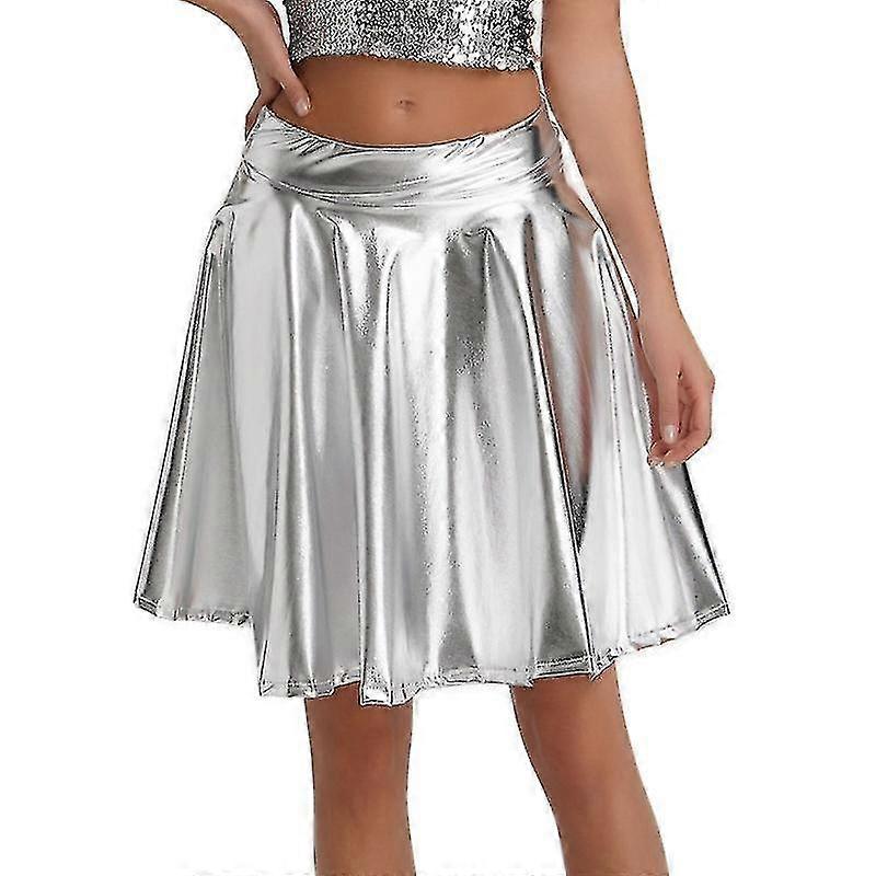 Women's Y2k Holographic Shiny Metallic Flared Skirt Casual A Line High Waist Skirt Dancewear