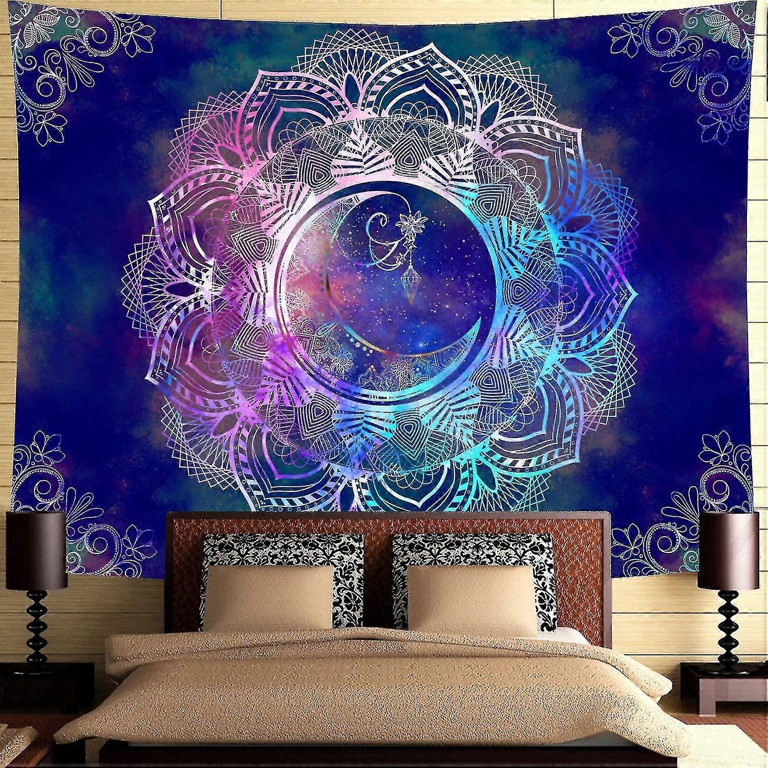 Tapestry Blue Starry Night Tapestry Mandala Celestial Moon Tapestry Wall Hanging Bohemian Psychedelic Wall Tapestry Hippie Boho Trippy Tapestry For Ce