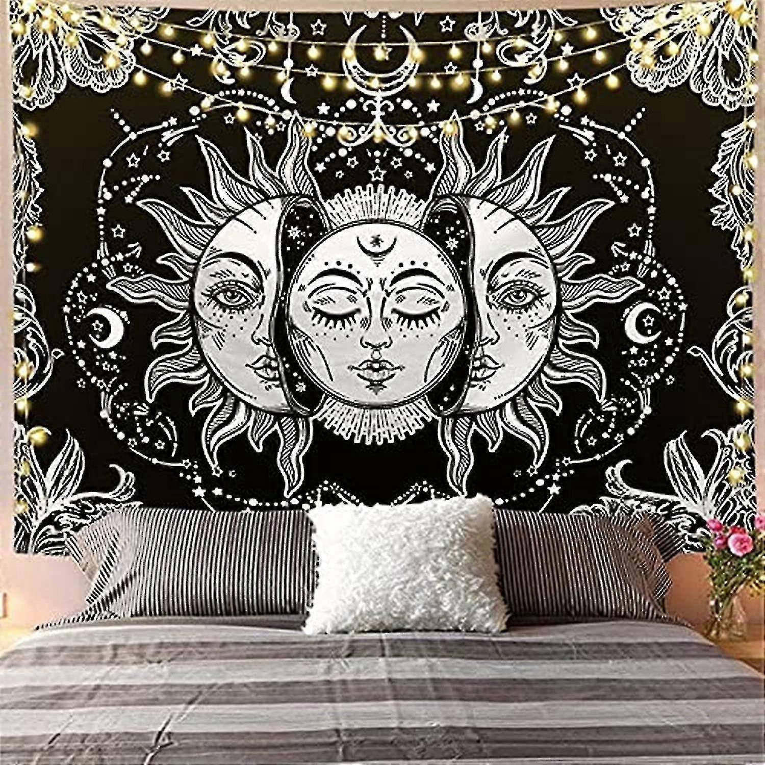 Moon & Sun Wall Tapestry, Boho Bedroom Decor, 150x200cm, Black & White
