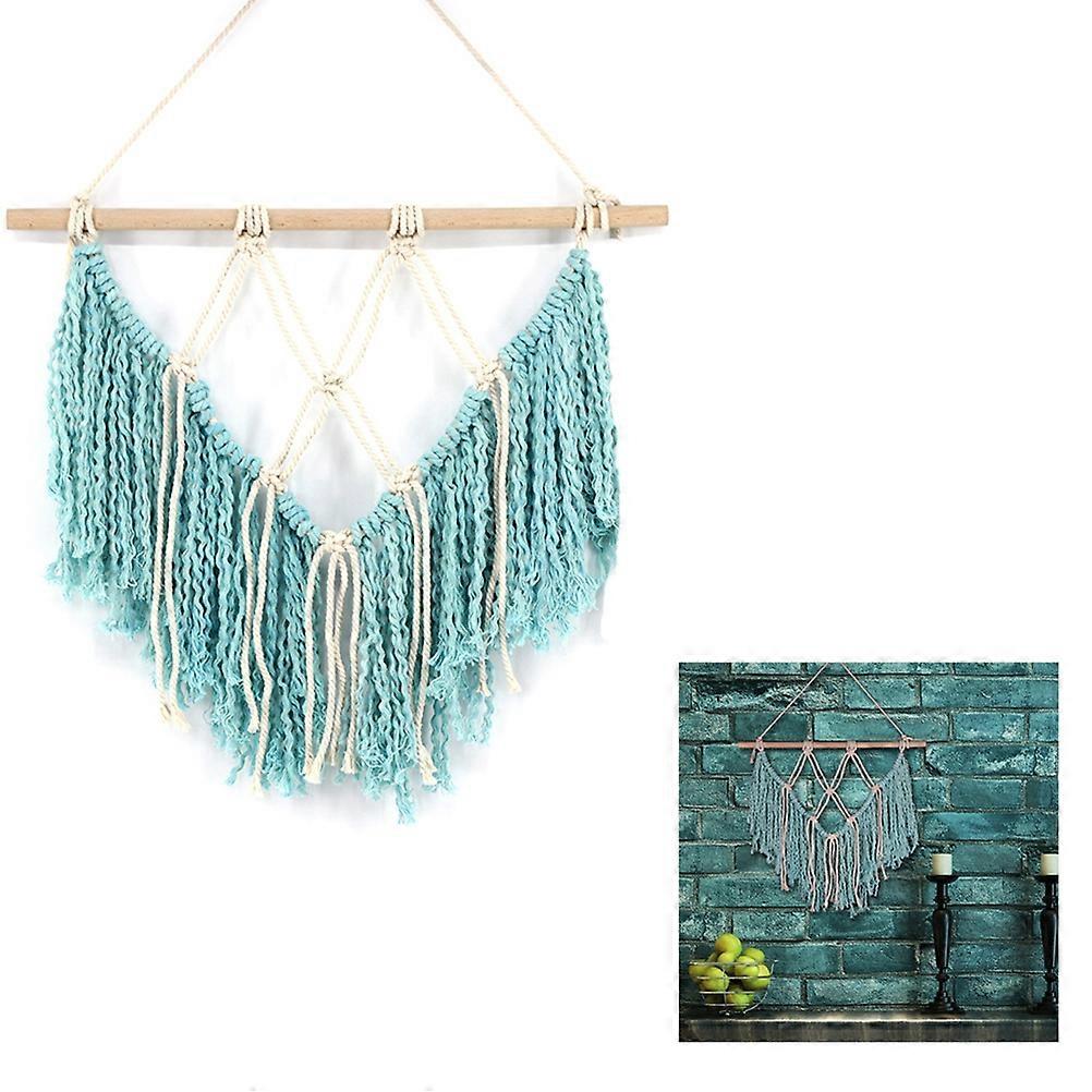 Fabric Wall Hangings Tassel Tapestry Blue 40x45cm Bohemian Style Living Room Wall Decor 1Set