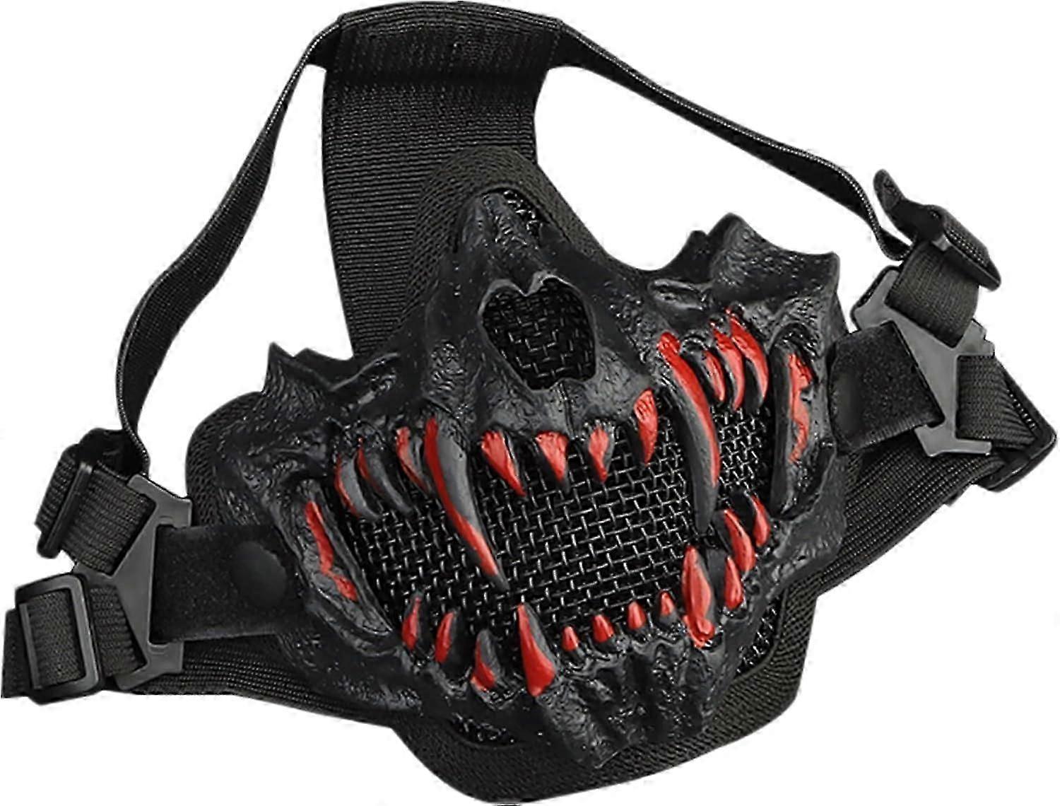 Half Face Skull Oni Mask Tactical Mesh Samurai Halloween Cosplay Paintball Hunting Gear