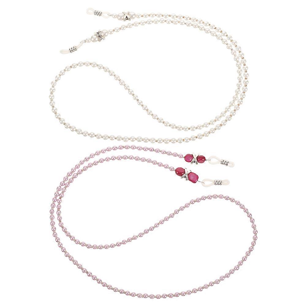 Pearl Eyewear Chain Holder Necklace Imitation Pearls Glasses Chain For Women Girls Travel Daily Wear 2Pcs