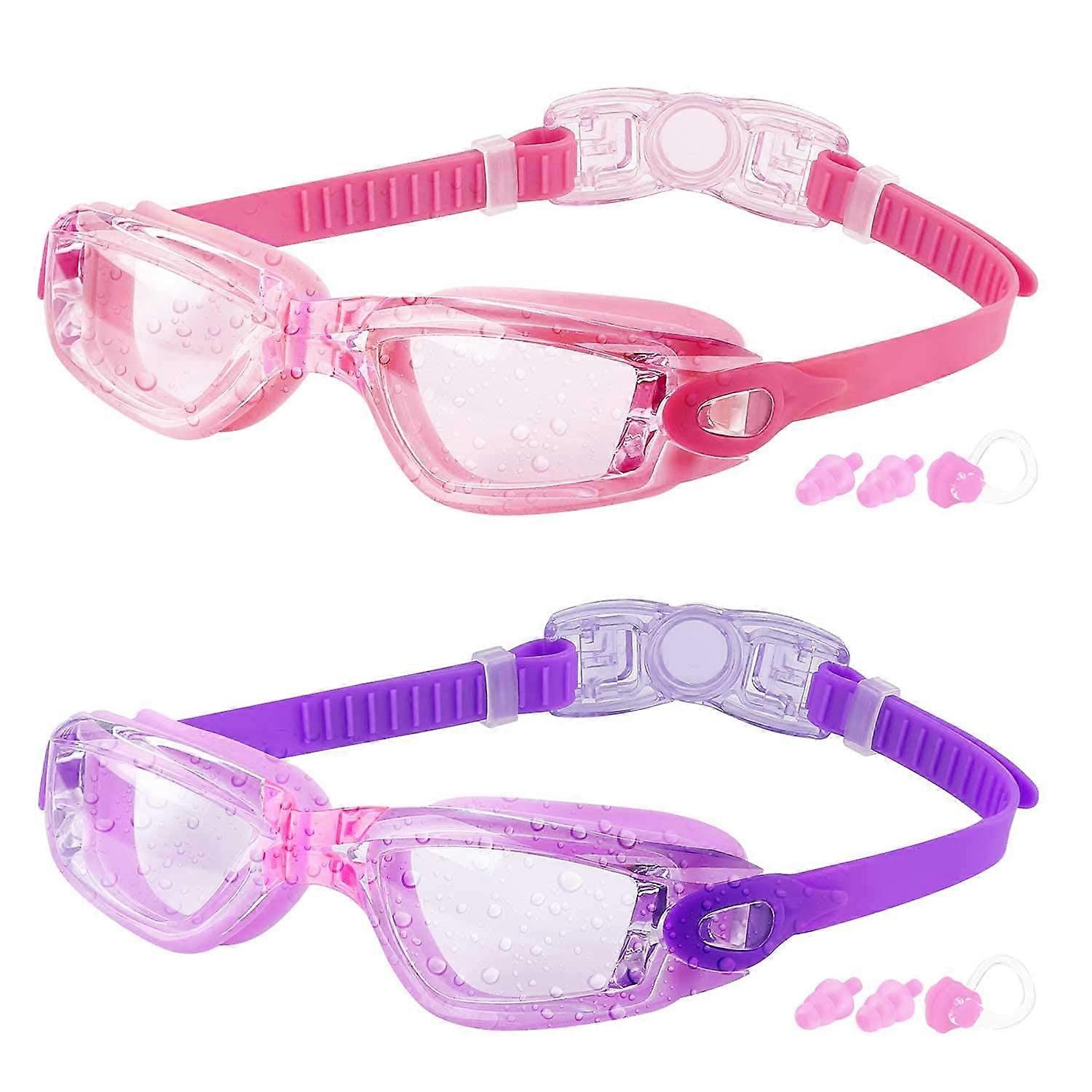 Kids Swimming Goggles, 2 Packs Crystal Clear Swim Goggles, Anti-Fog, Waterproof, No Leaking(pink)