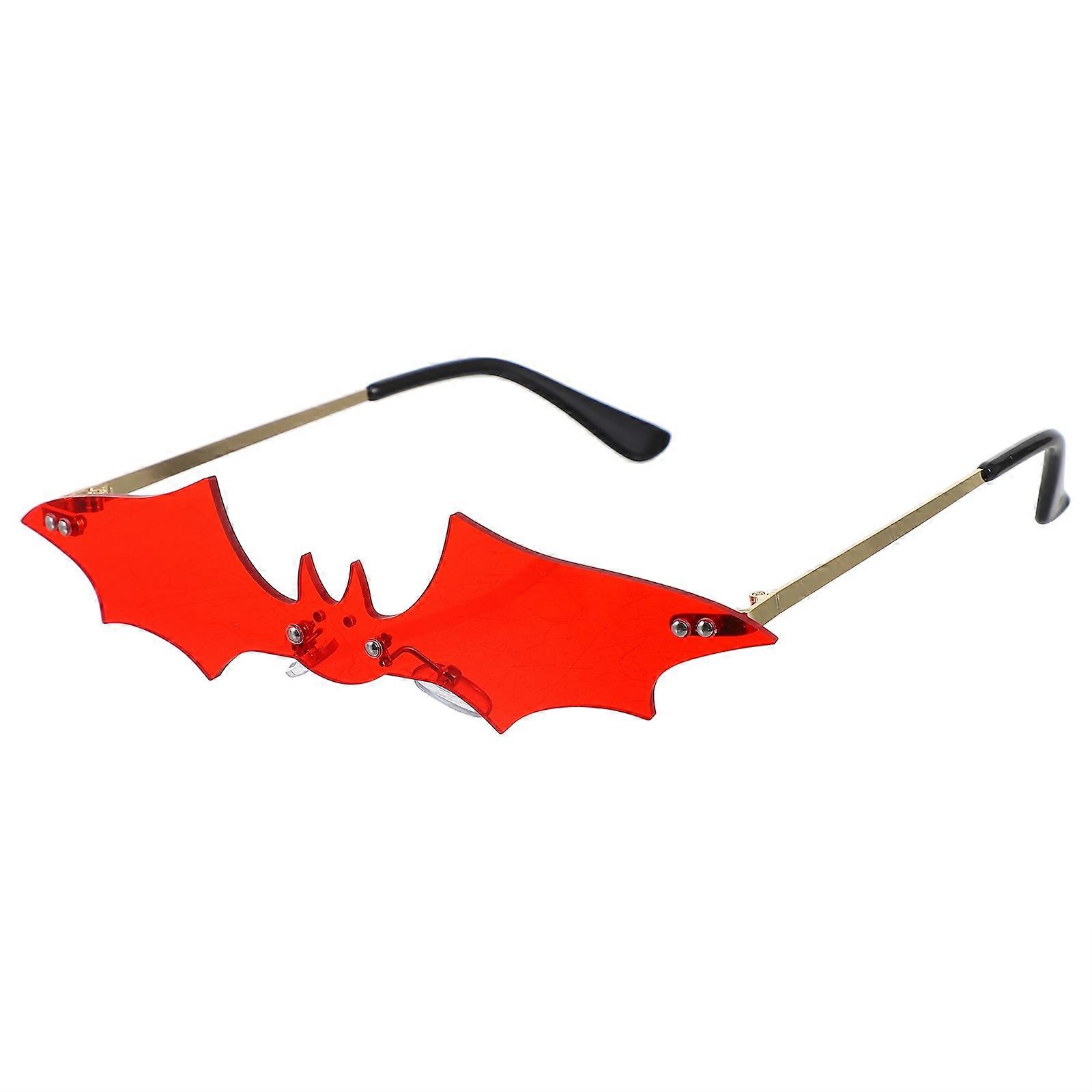 Women's Bat Shaped Rimless Sunglasses, Frameless Novelty Eyewear with Vibrant Red Lenses, Stylish Gold Design, Unique Fashion Accessory for Halloween