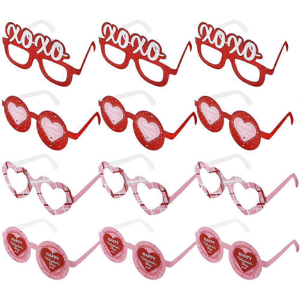 Valentine's Party Eyeglasses 12Pcs Valentines Photo Booth Props Heart-Shaped Suitable For Couples Celebrating Valentine's Day Multi Color