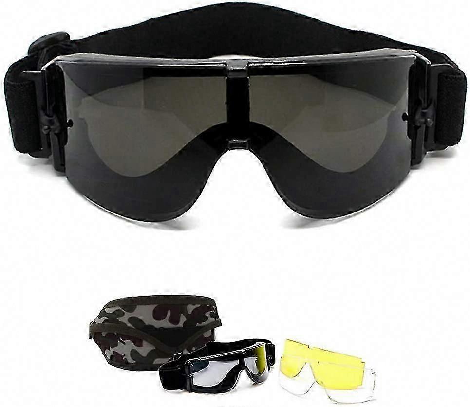 Airsoft Paintball Goggles, Motorcycle Riding Goggles with 3 Interchangeable Lenses and Camo Cover for Running Ski Fishing Hunting War Games