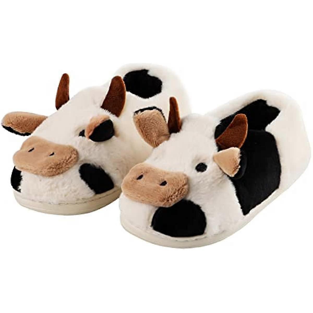 Cute Cow Slippers For Women Girls Cartoon Fuzzy Plush Cotton Slippers For Indoor Outdoor Warmth In Winter