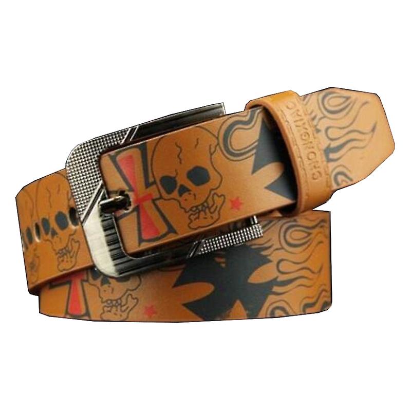 Skull Pattern Men's Belt Punk Style Pin Buckle Waistband Brown Belts