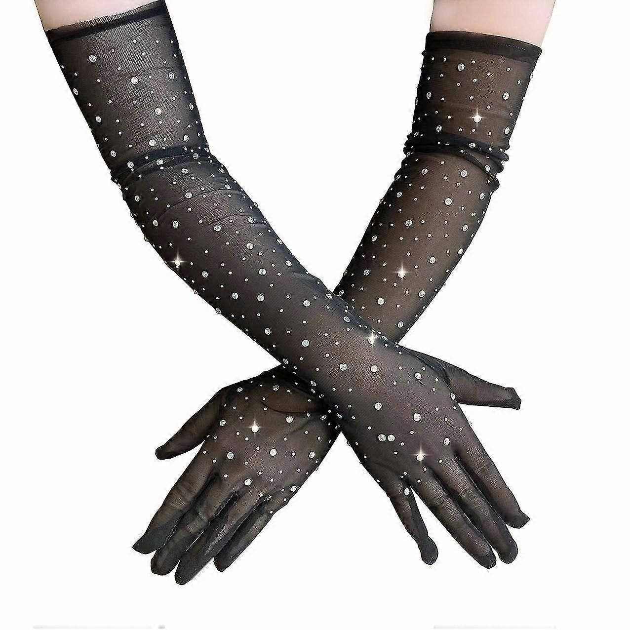 New Style Rhinestone Net Gloves Women's Ultra-thin Long Summer Driving Cycling Black Sunscreen Arm Sleeves