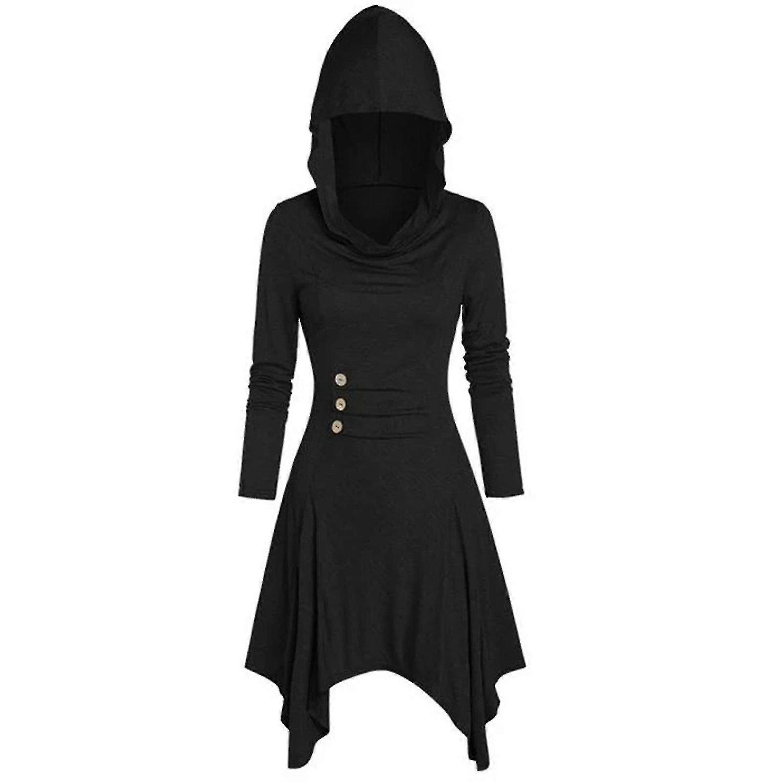 Halloween Costumes Women Costumes Lace Up Hooded Vintage Pullover High Low Bandage Long Dress Cloak