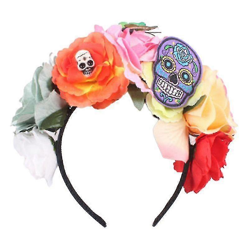 halloween artificial rose flower headband embroidery skull 3d butterfly crown wreath day of the dead festival party headpiece decoration
