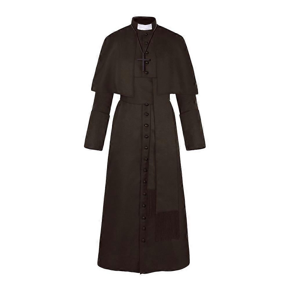 Halloween Father Medieval Vintage Cosplay Outfit, European Fantasy Theme Stage Wear with Cross Pendant, Multiple Colors and Sizes