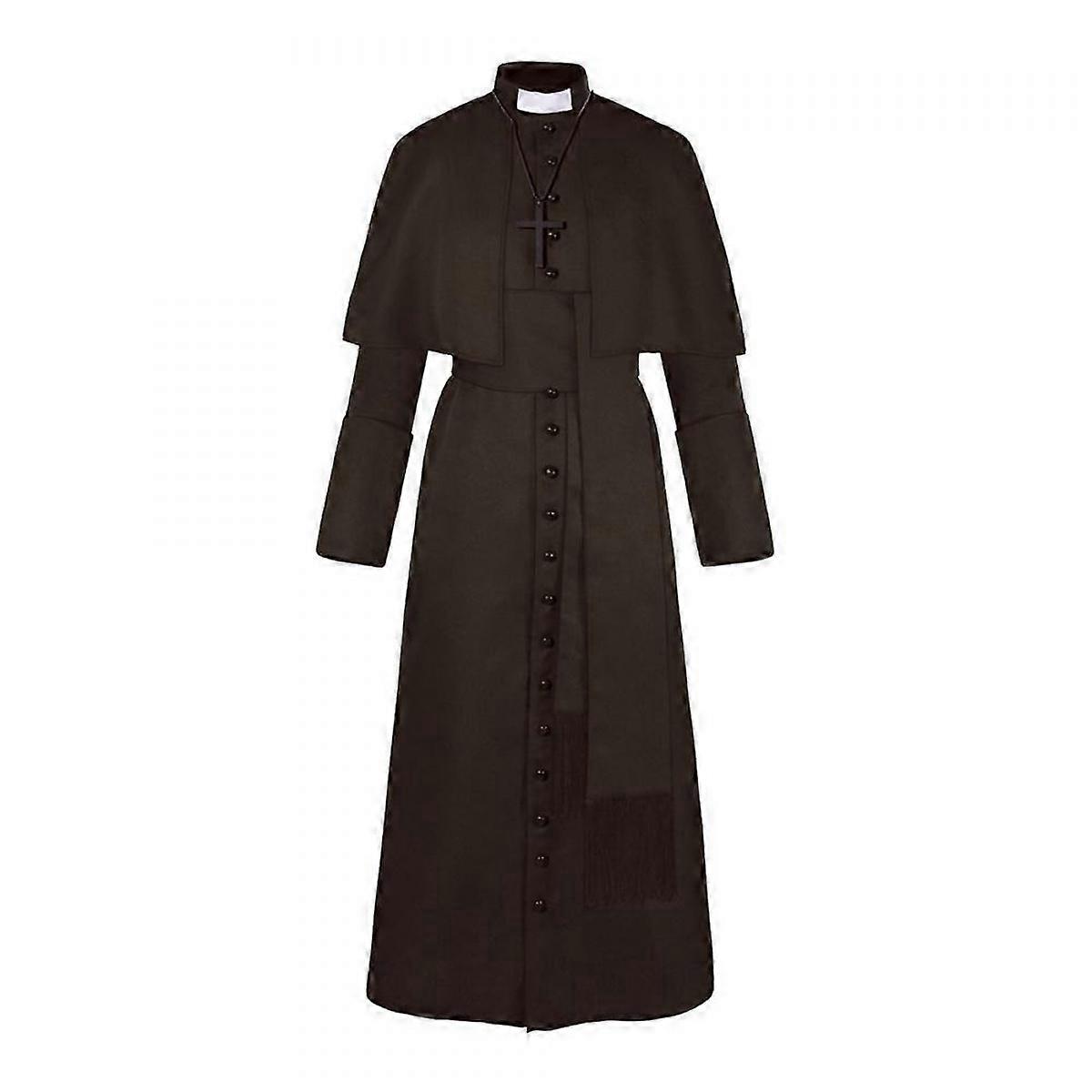 Halloween Father Medieval Vintage Cosplay Outfit, European Fantasy Theme Stage Wear with Cross Pendant, Multiple Colors and Sizes