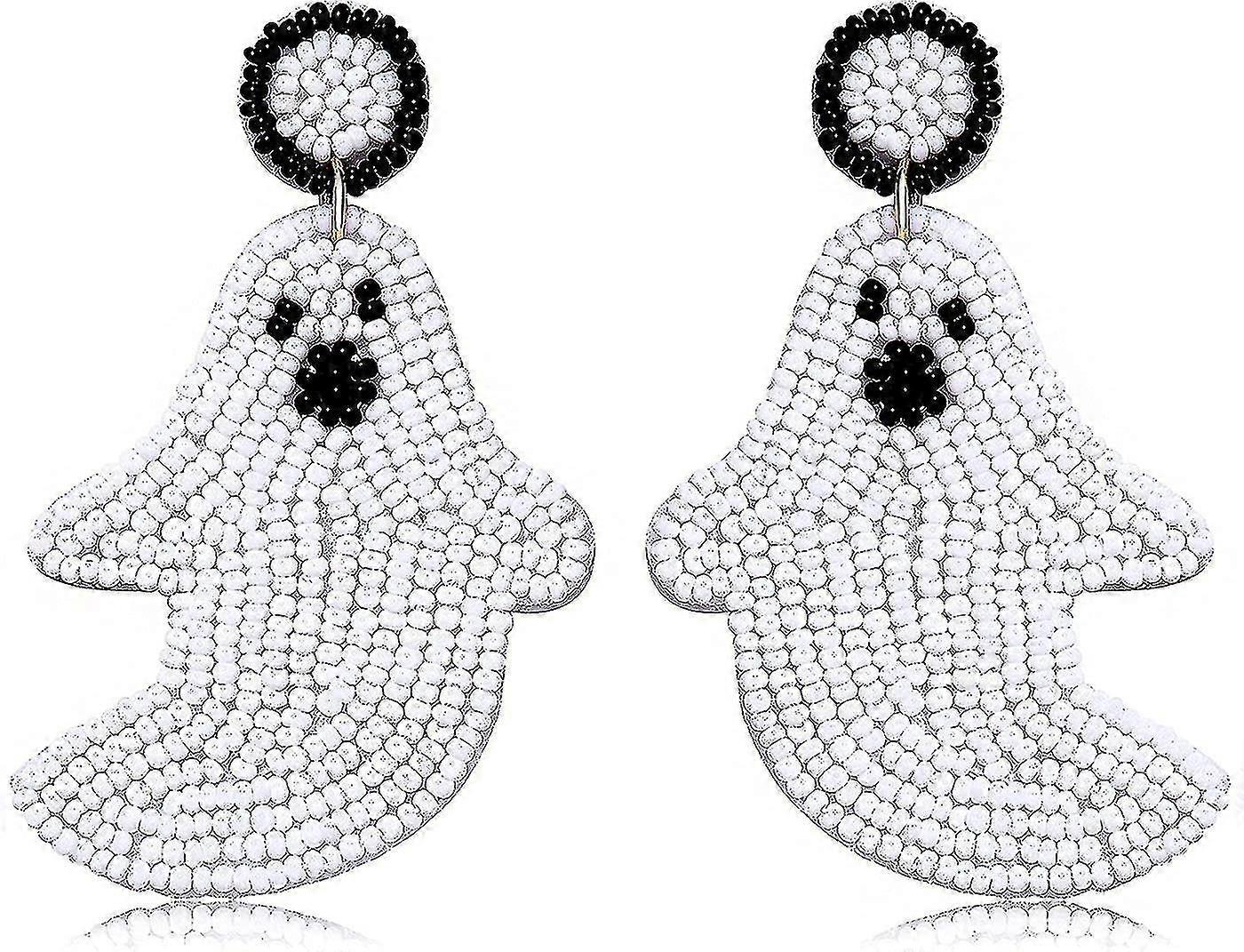 Halloween Earrings Spooky Beaded Ghost Pumpkin Dangle Earrings For Women Handmade Bead Drop Earring Studs Costume Themed Party Jewelry Gifts