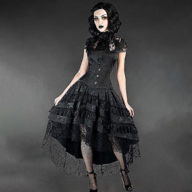 Halloween Jacquard Midi Skirt Women High Waist A-Line Black Flared Skirt