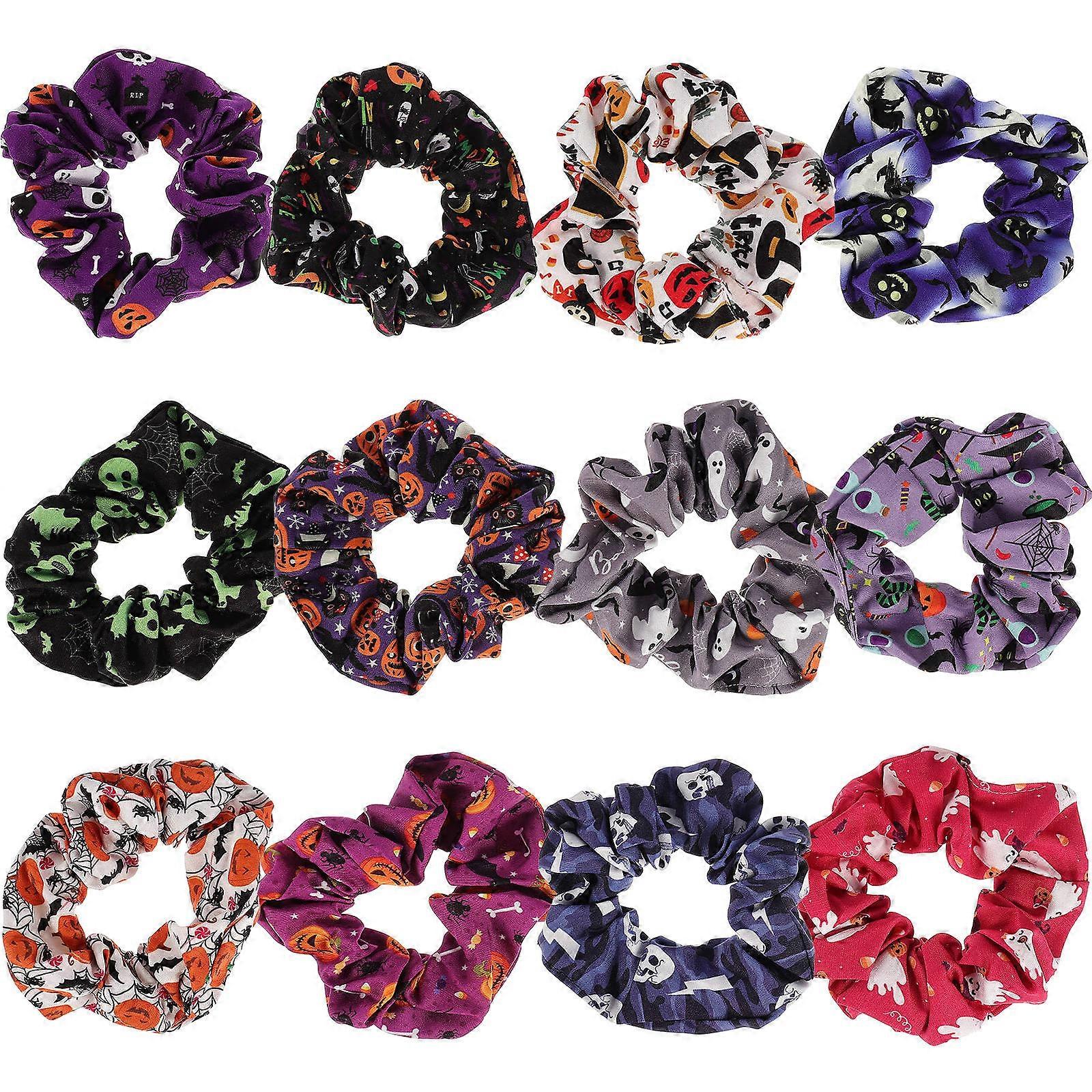 Halloween Hair Scrunchies 12pcs Elastic Hair Ties for Women, Charming Patterns, Comfortable Headwear for Parties & Daily Wear