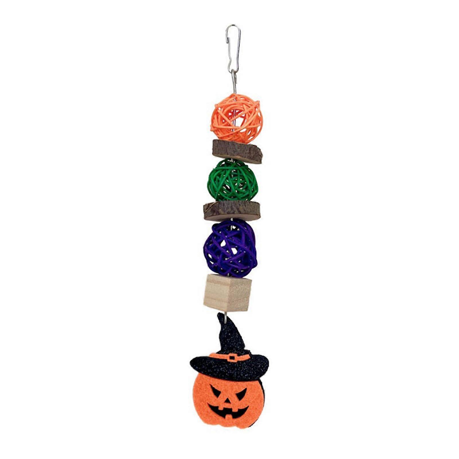 Halloween Bird Chewing Toys Apple Wood Rattan Ball Beak Grinding Parrot Cage Hanging Toy with Pumpkin Decor for Parakeets Hat Pumpkin