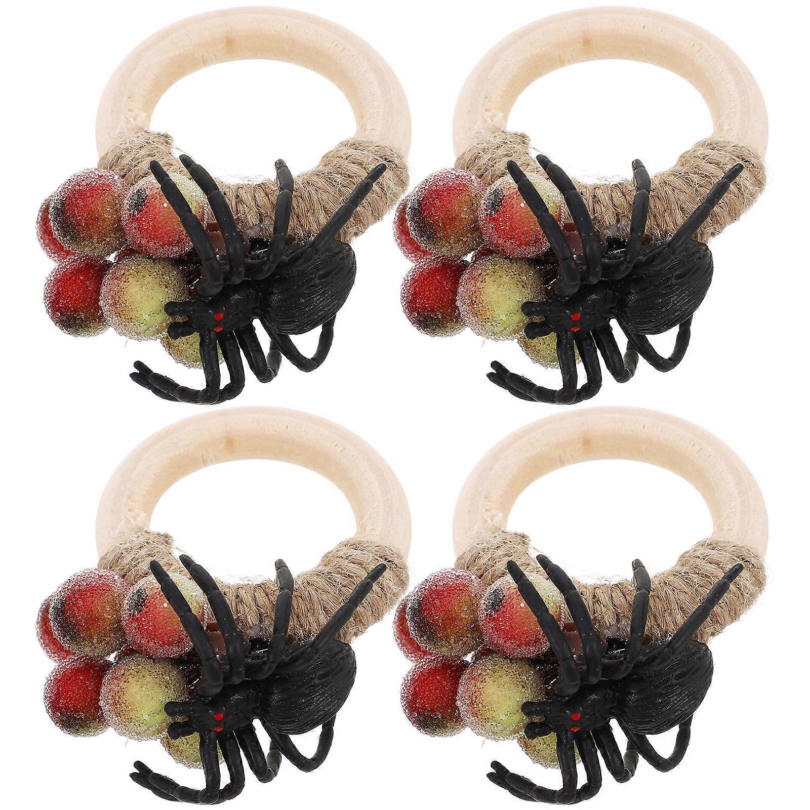 Halloween Spider Napkin Rings Unique Serviette Ring for Dining Table Decor Red Color Wood Twine Plastic 6 Pieces