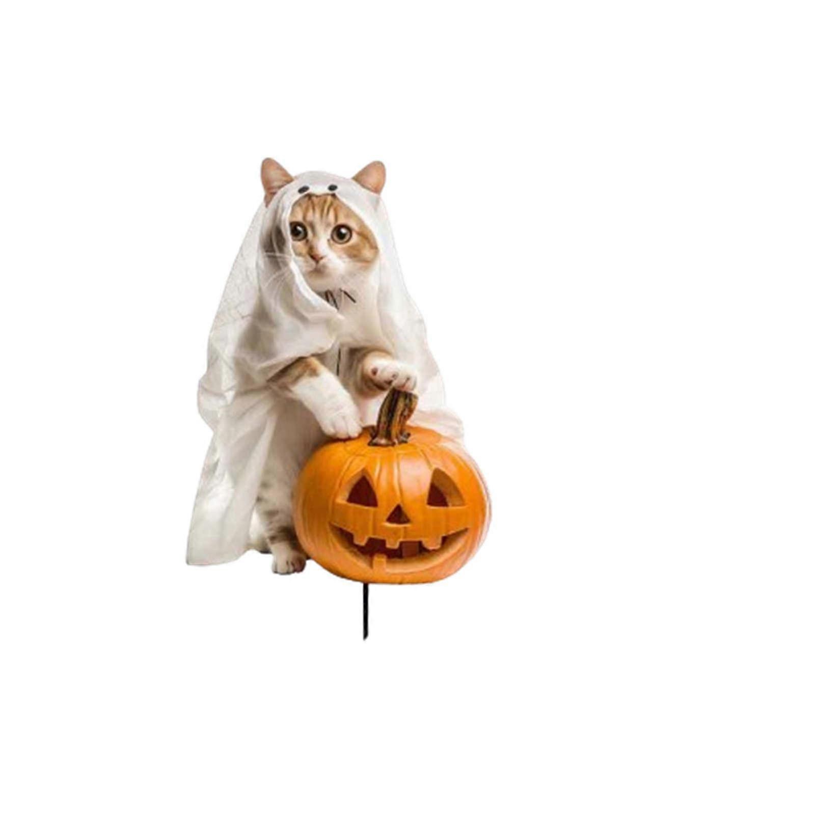Halloween Patio Ground Plug Garden Witch Hat Kitty Holiday Decor Insert Halloween Kitty With Witch Hat And Pumpkin Holiday Ornaments FLY5089