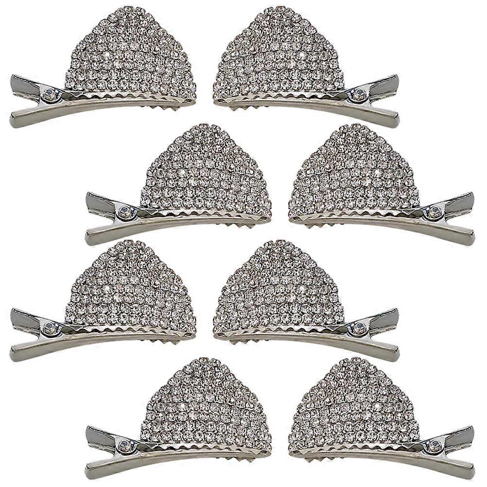 Halloween Cat Ears Hairpins Shiny Rhinestone Barrettes for Girls 8Pcs