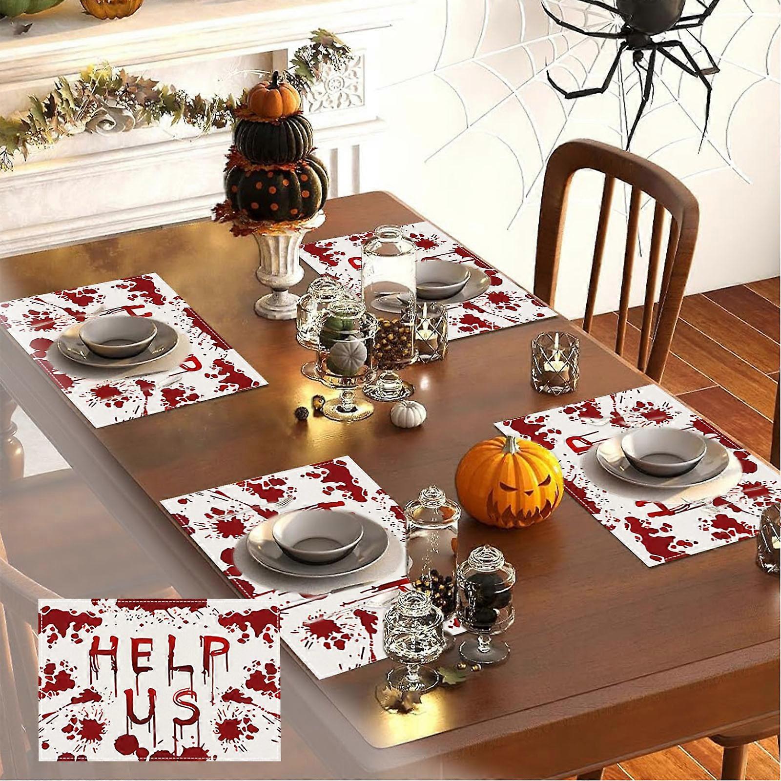 Halloween Graffiti Printing Placemat New Red Letter Linen Table Mat Border Home Table Decoration Insulation Mat Holiday Ornaments FLY3553