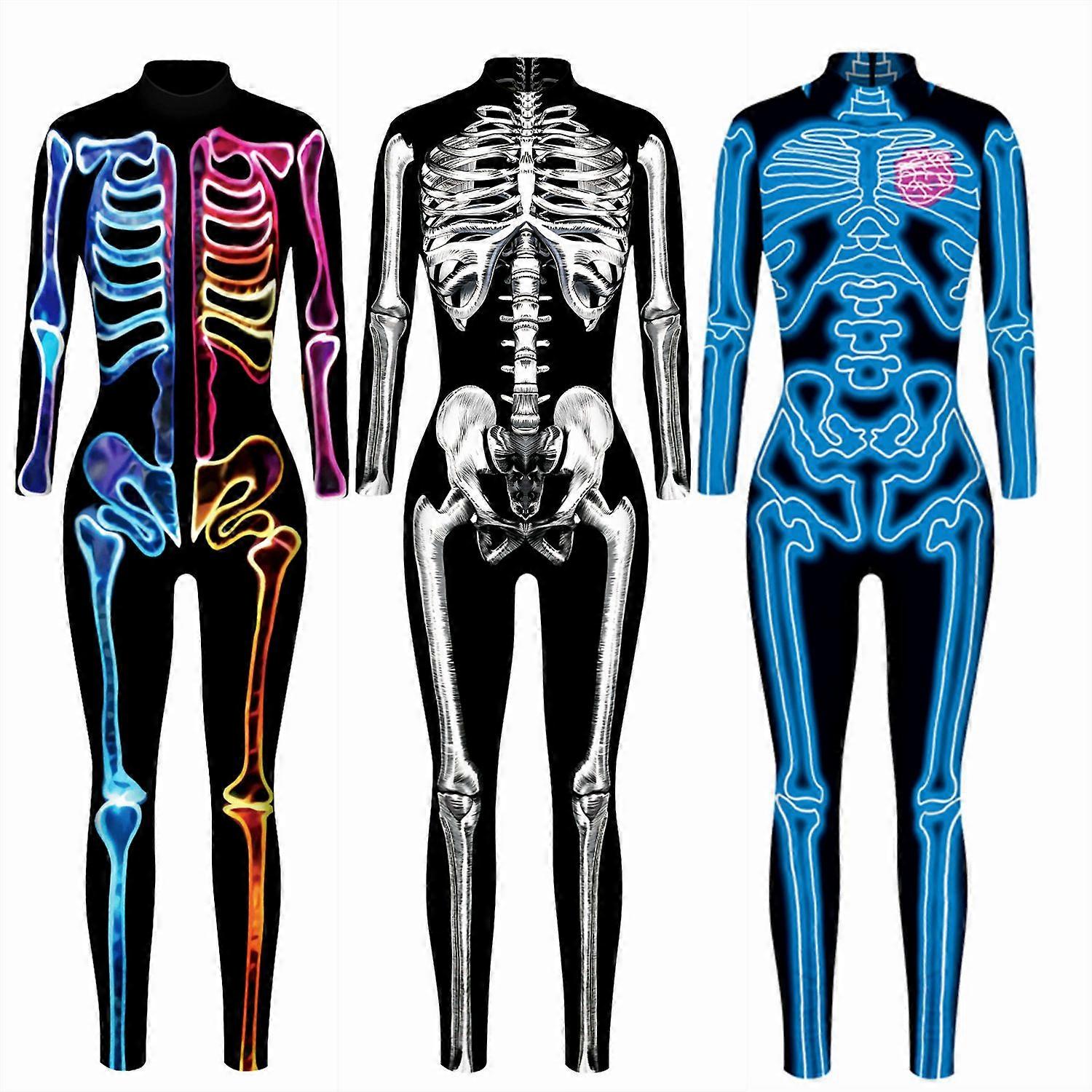Halloween Skeleton Punk Gothic Women Sexy Skull Slim Jumpsuit Cosplay Costume Zentai Bodysuit Fancy Suit