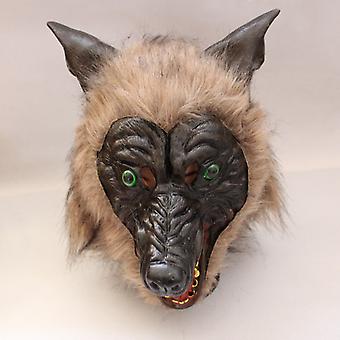Halloween New Wolf Head Hair Latex Rubber Mask Gloves, Unisex Novelty Animal Full Mask Halloween Role Play Fancy Dress Party Costume