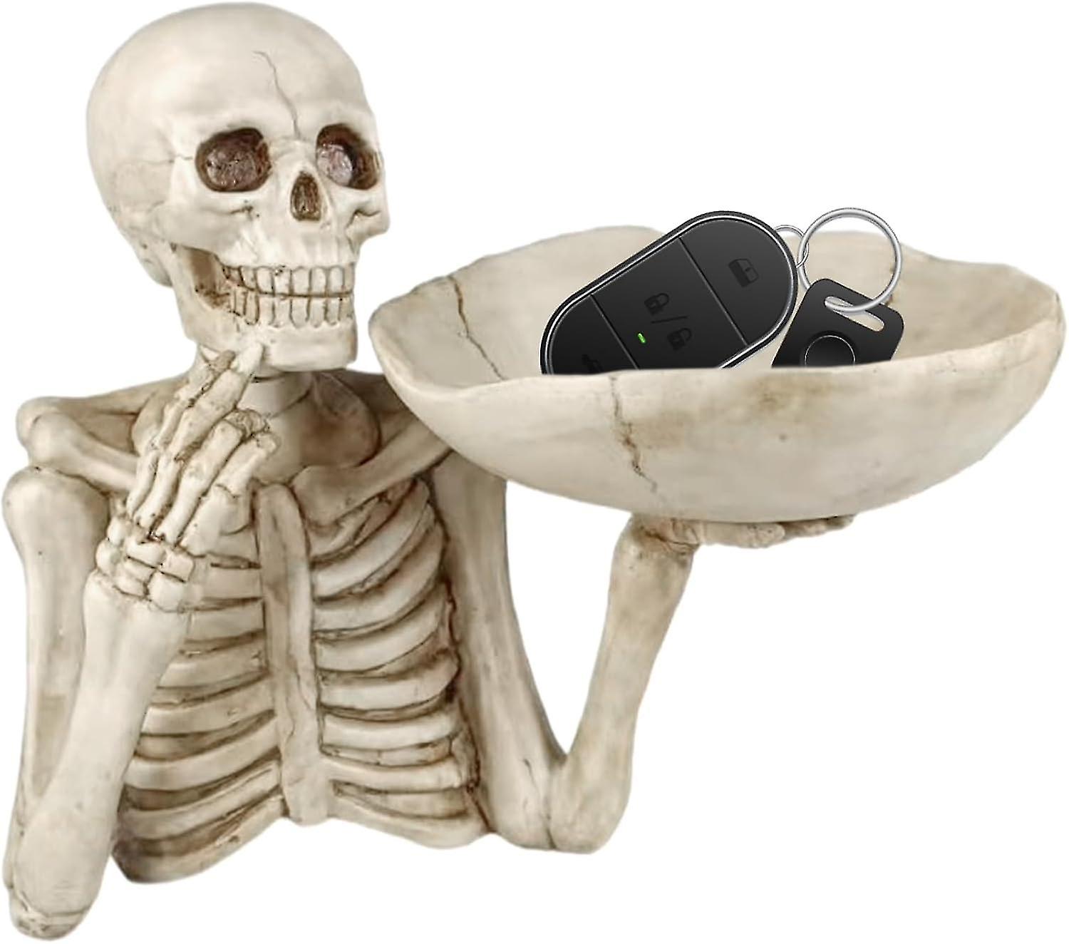 Halloween Candy Bowl, Skull Halloween Candy Dish Ornament, Resin Skeleton Handheld Sweet Basket