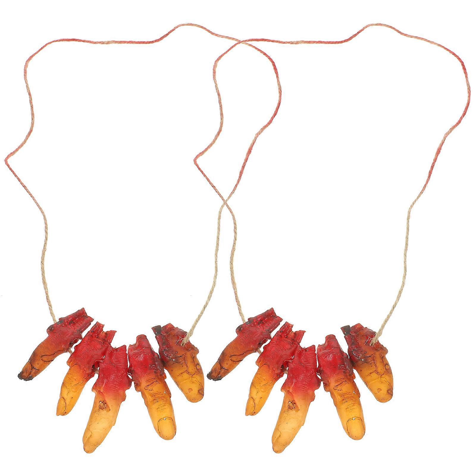 Halloween Costume Props Bloody Finger Pendant Spooky Necklace Dark Red 28X6CM Halloween Party Decoration 2Pcs