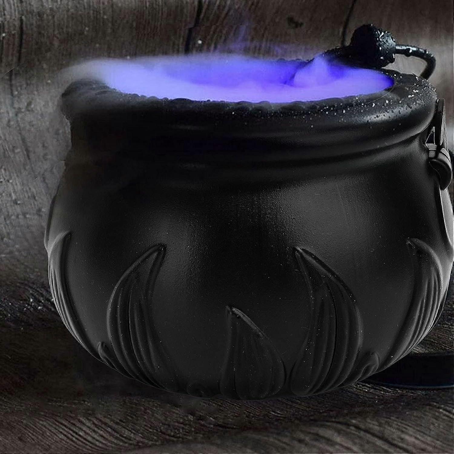 Halloween Mist Maker Fogger, Halloween Witch Cauldron Fog Maker, Water Fountain Pond Fog Atomizer with 12 LED Lights Color Changing,Water Fountain Fog