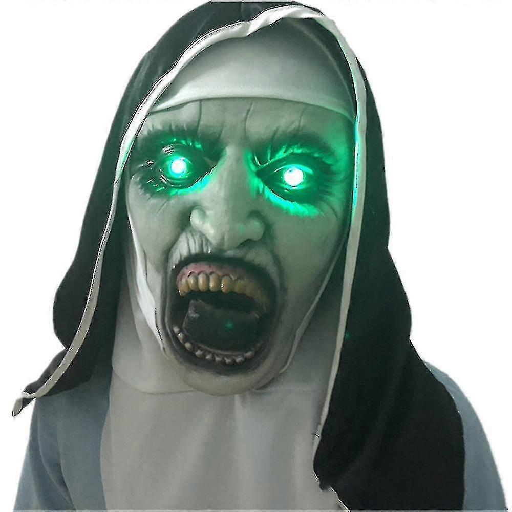Halloween Christmas Scary Nun Halloween Party Latex Mask With Headscarf Creepy Full Face Helmet Headgear For Devil Cosplay Carnival Costume Props