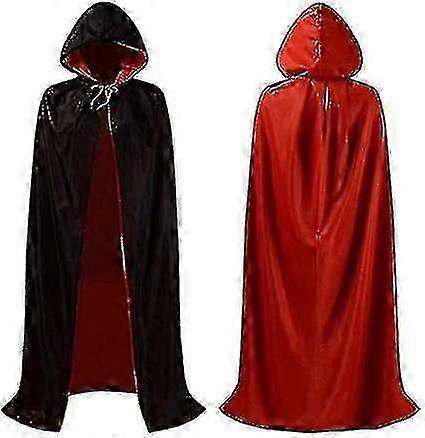 Halloween Cape Adult, Black Hooded Cape 140cm