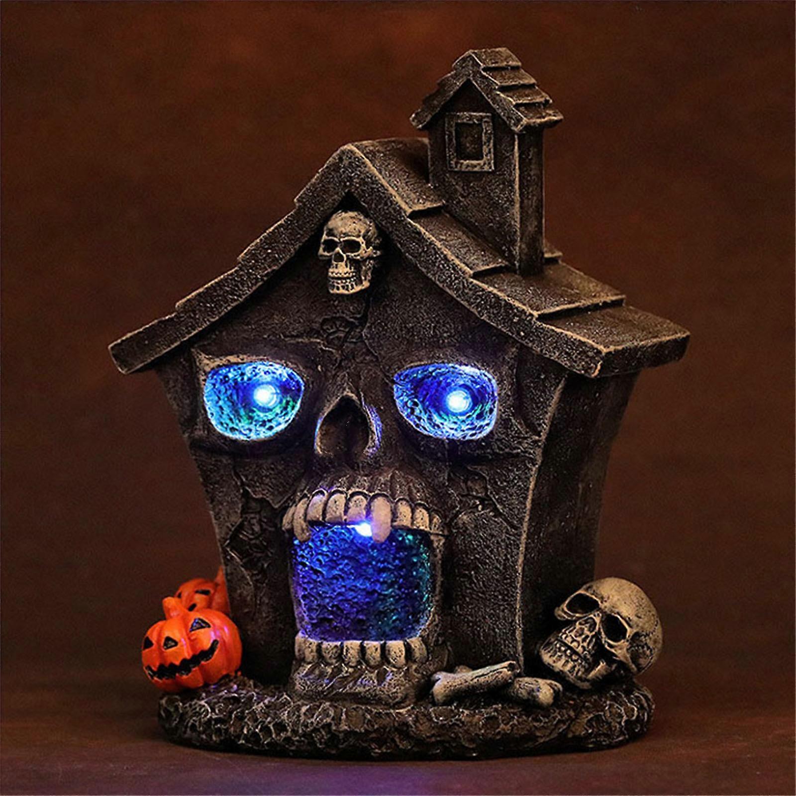 Halloween Haunted House Skull Pumpkin Ghost Resin Artwork Adorns Glowing Toys Holiday Ornaments FLY2601