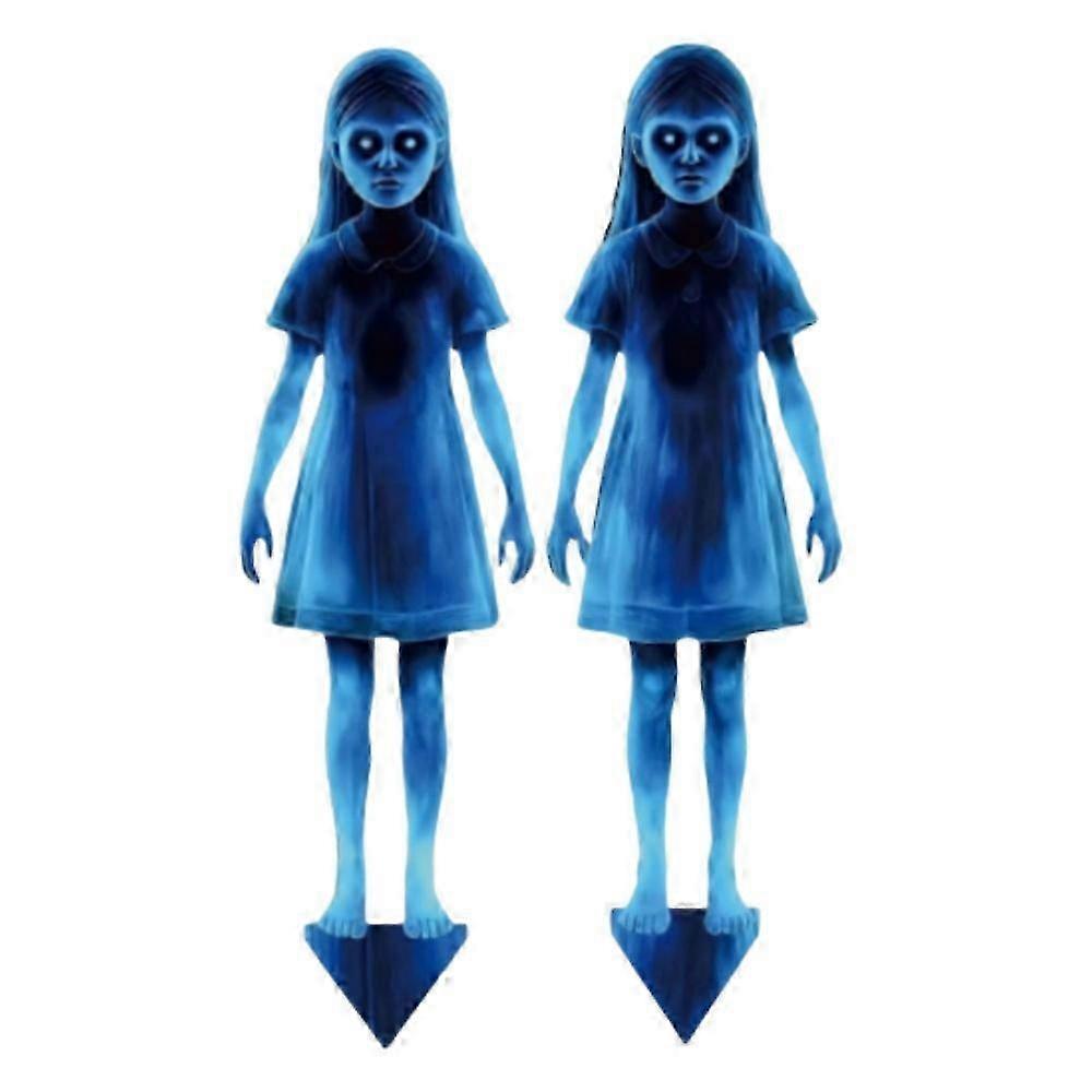 Halloween Haunted Twin Ghost Ground Stakes,2D Flat Scary Twins Halloween Yard