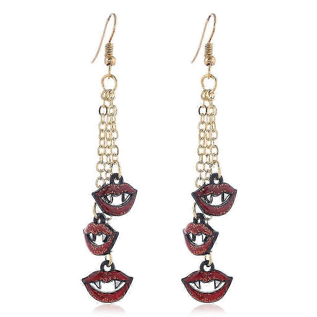 Halloween Theme Earrings Pumpkin for Vampire Lips Long Tassel Chain Drop Dangle Eardrop Jewelry for Women Girls Party De