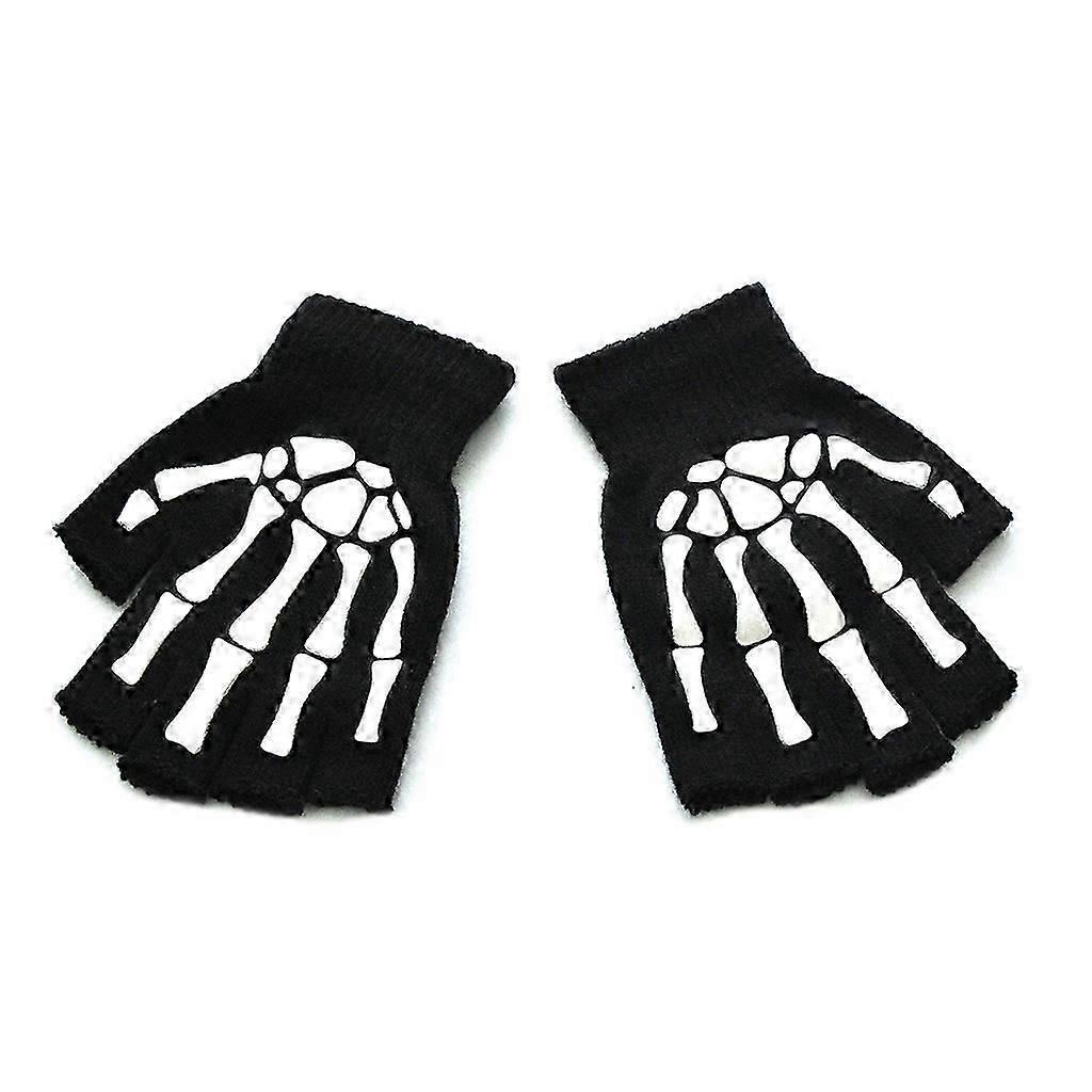 Halloween Half Finger Skeleton Gloves Knitted Glow in the Dark Cosplay Costume