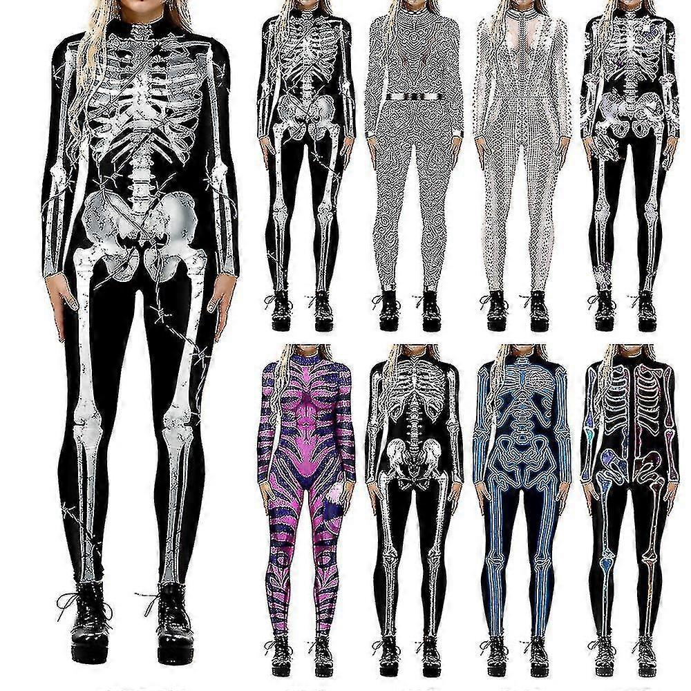 Halloween 3d Printed Skeleton Jumpsuit Carnival Party Playsuit Fancy Dress Costume For Women Adult