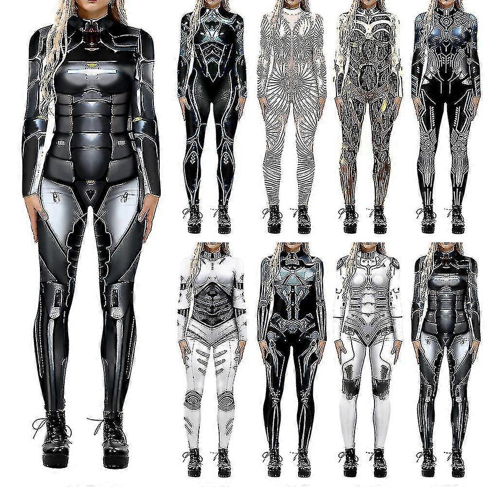 Halloween 3d Robot Printed Cosplay Jumpsuit Carnival Party Cyberpunk Playsuit Fancy Dress Costume For Women Adult