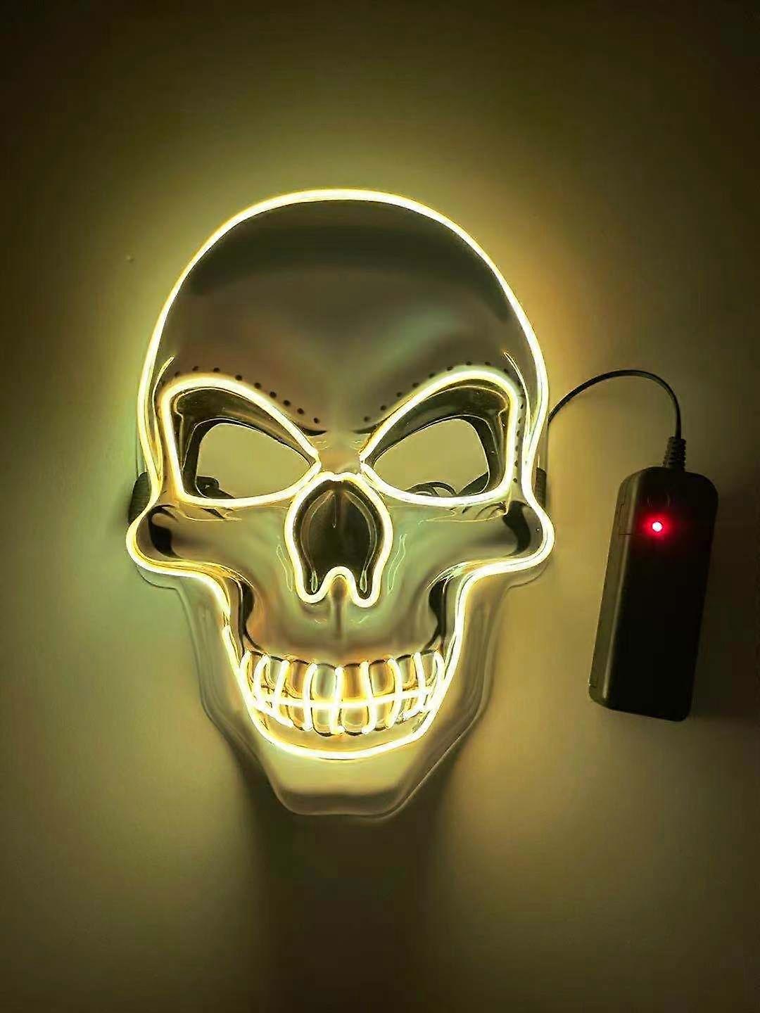Halloween LED Skull Neon Lighting Mask Horror Ghost Head Men Women Funny Party Luminous Glow Dark Skeleton Cosplay Costume Props