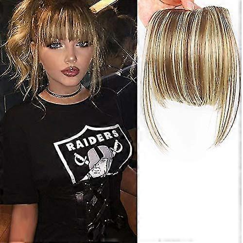 Fringe Bangs Synthetic Hair Extensions Clip In Bangs 6" Short Straight Hairpiece Front Neat Bang Two Side Blonde(18h613#)