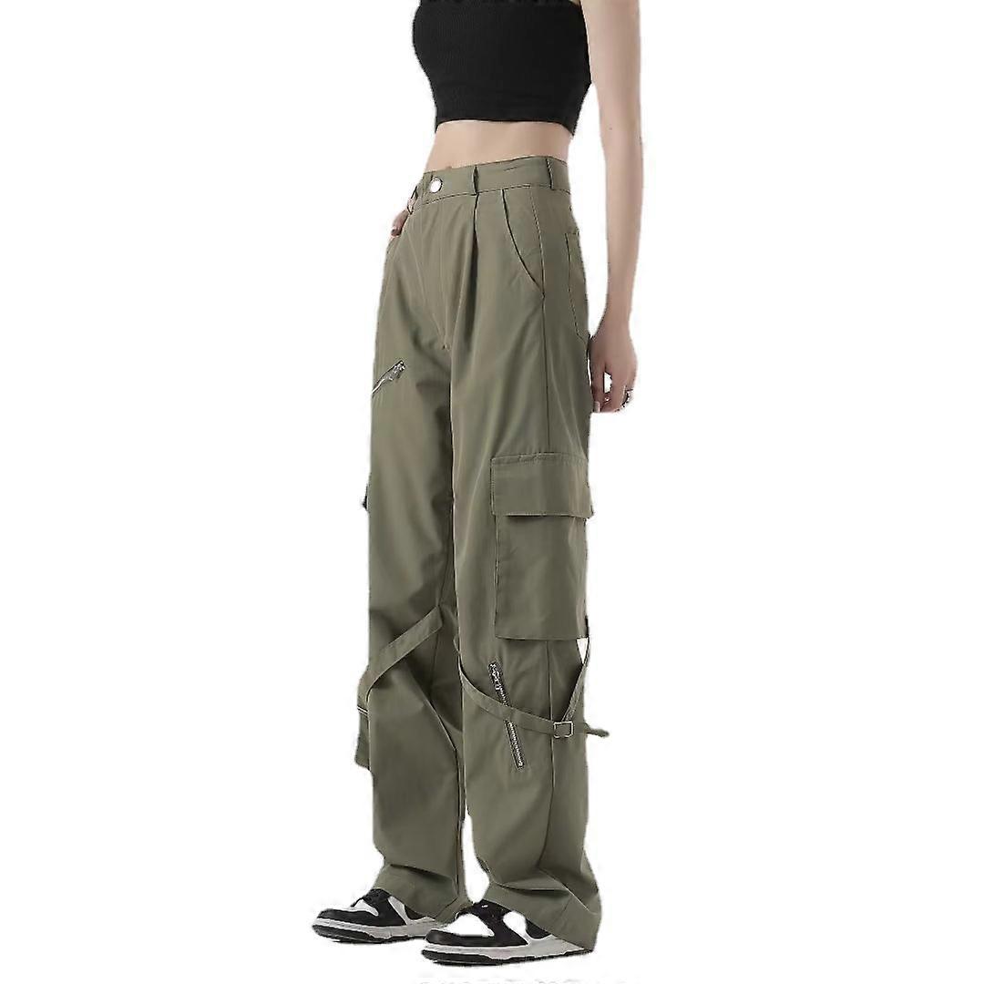 High Street Hip-hop Zipper Decorated Multi-pocket Crane Pants Women's High Waist Hip-hop Spice Girls Loose Straight Casual Pants Women