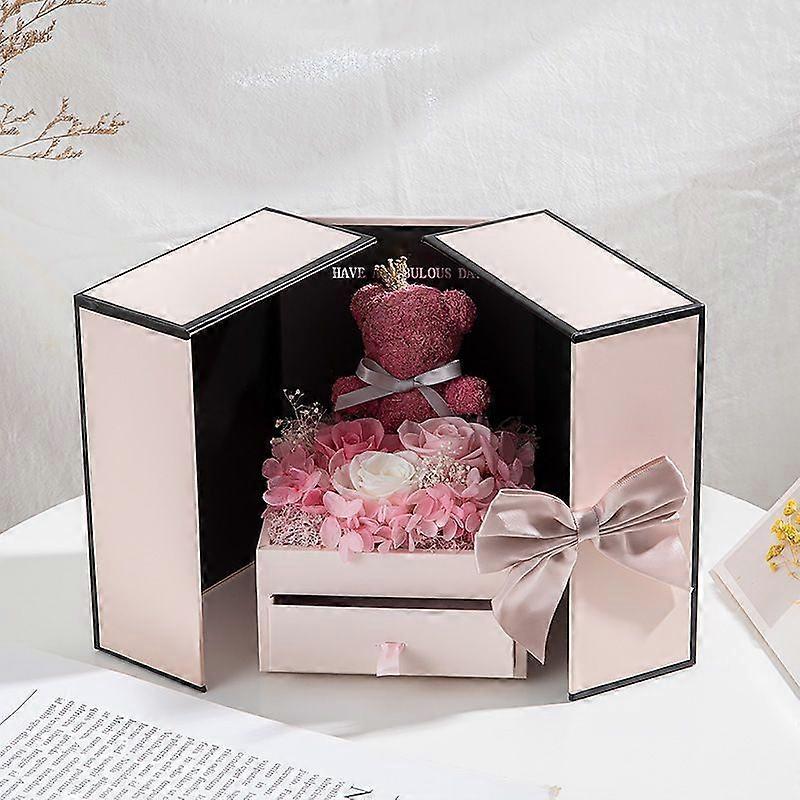 Birthday Gifts for Mom, Moss Bear with Three Red Roses Preserved Flowers Gift Box, Mom Birthday Gifts from Daughter or Son