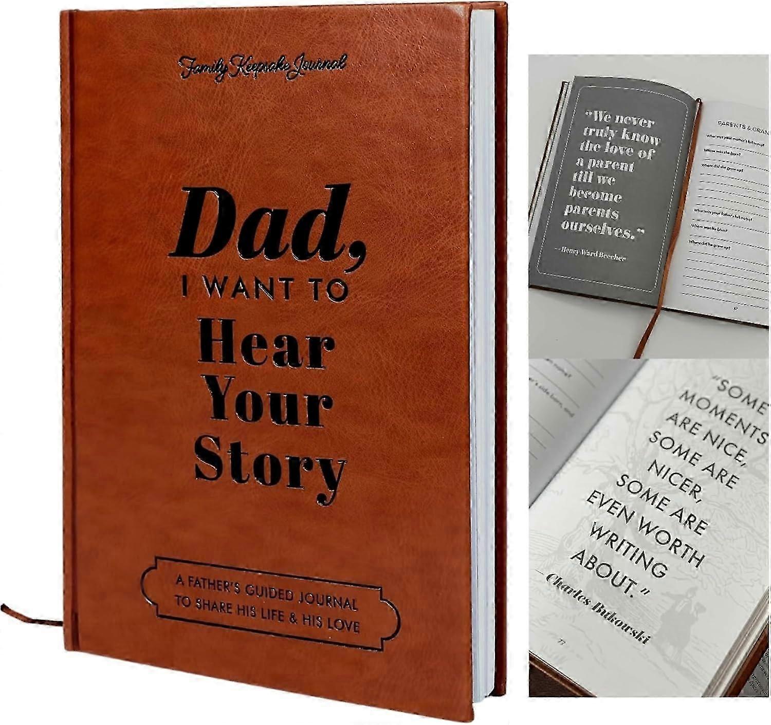 Great Gift For Dad;Dad, I Want To Hear Your Story: Father's Day Gift Wrapping Hardcover Faux Leather, Black Gold Foil Lettering, Ribbon Bookmark, Fath