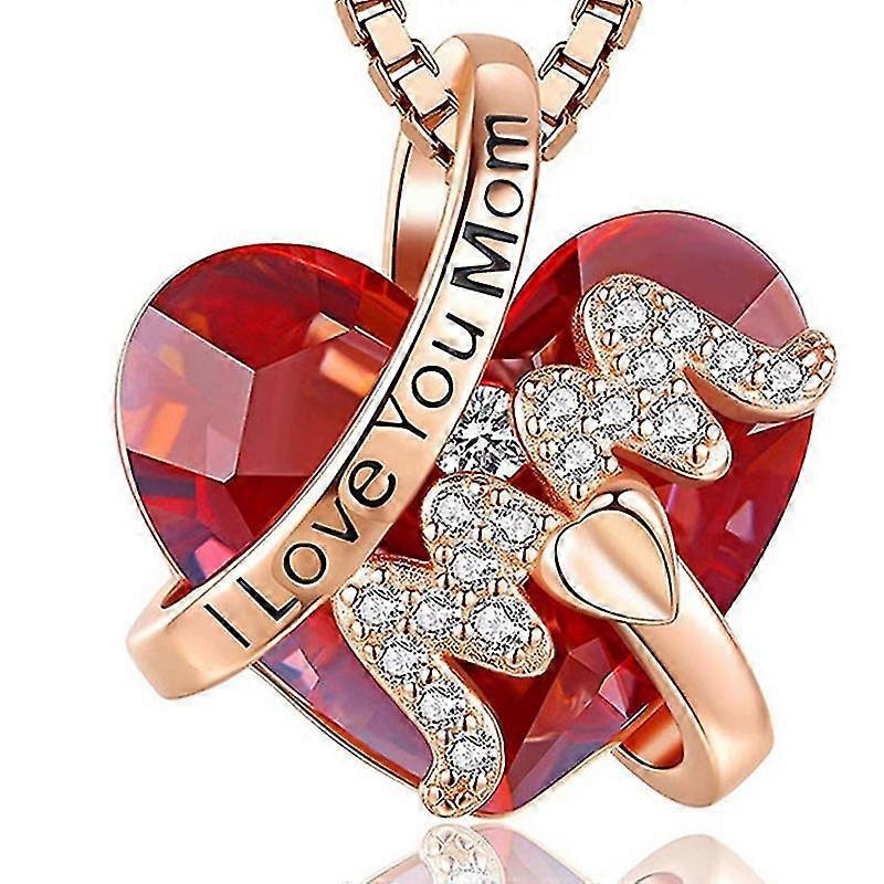 Mother's Day Gift "mom" Pendant Necklace Red Blue Heart Crystal Jewelry Ladies Anniversary Birthday